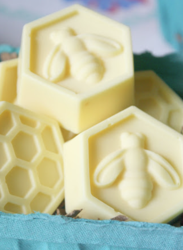 These little honeycomb soaps are made using a silicone cake pan.