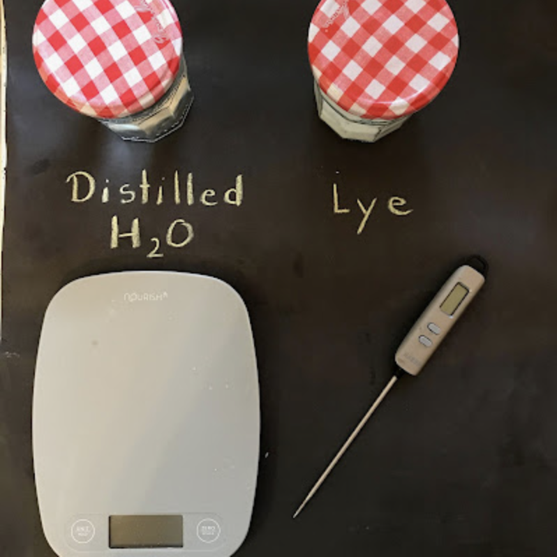 Lye is an extremely dangerous thing to work with. Especially when it is mixed with water. Always wear eye protection, rubber gloves, long sleeves, pants, and shoes for your protection. Do not make soap in the presence of children or pets!